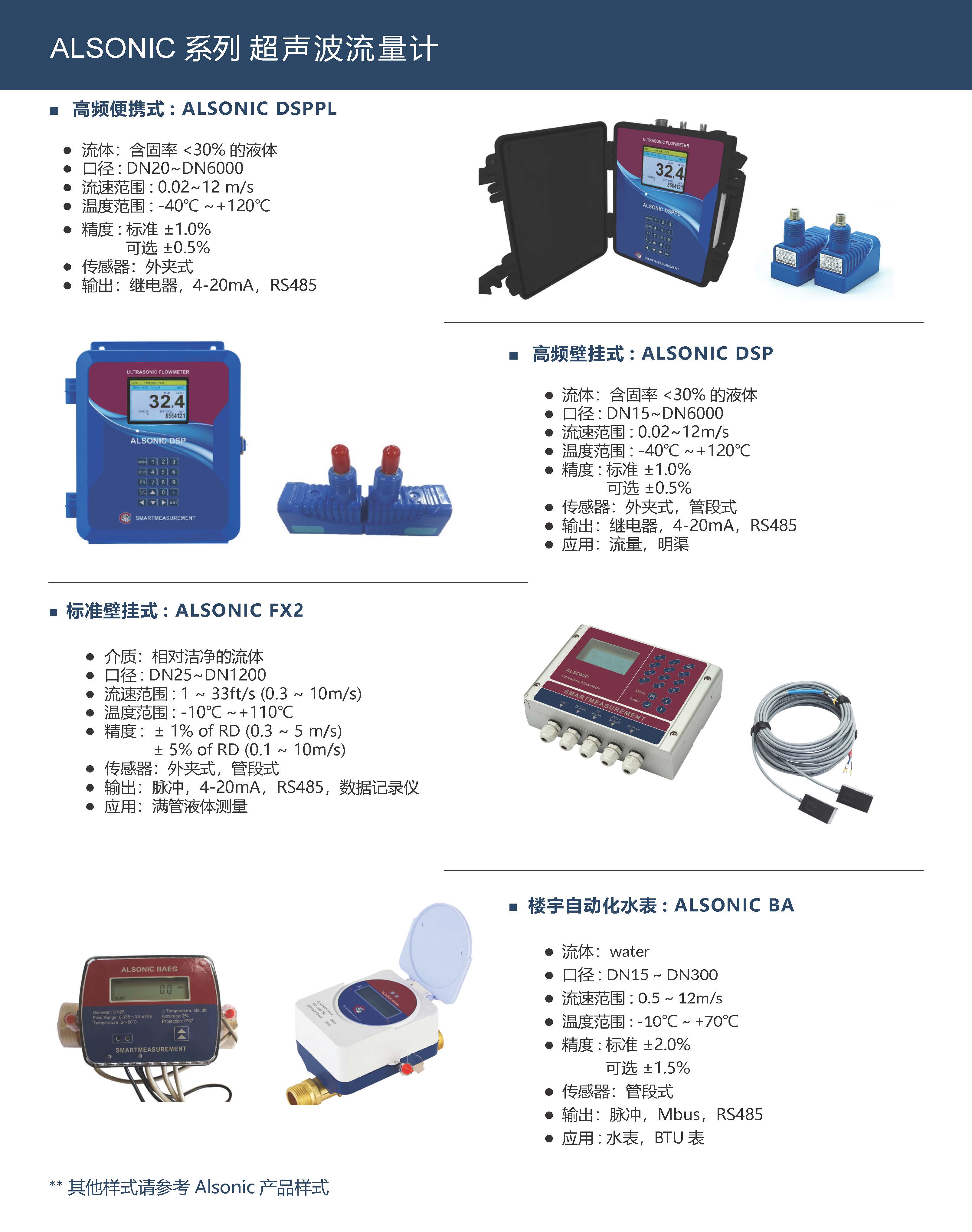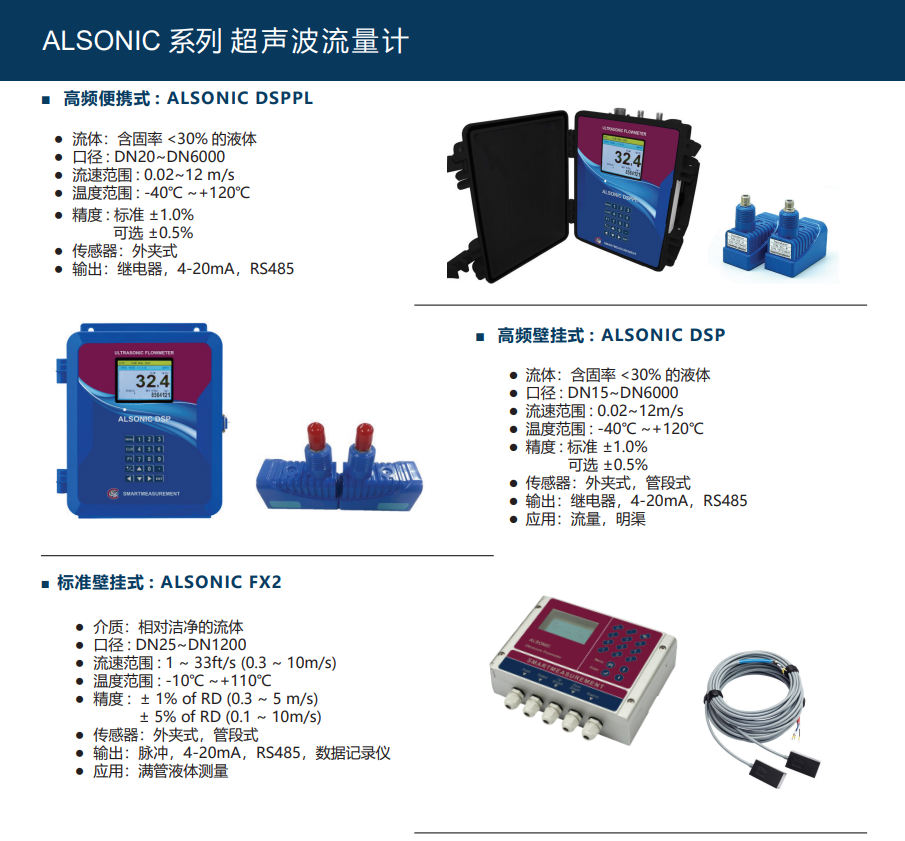 ALSONIC超声波流量计主要参数